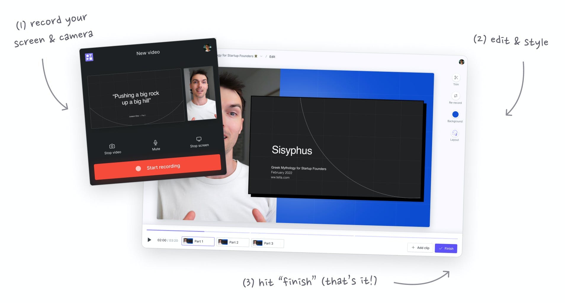 Video editing is a pain. Don’t waste time cutting video tracks together. Use Tella to create stunning course videos, without any editing.